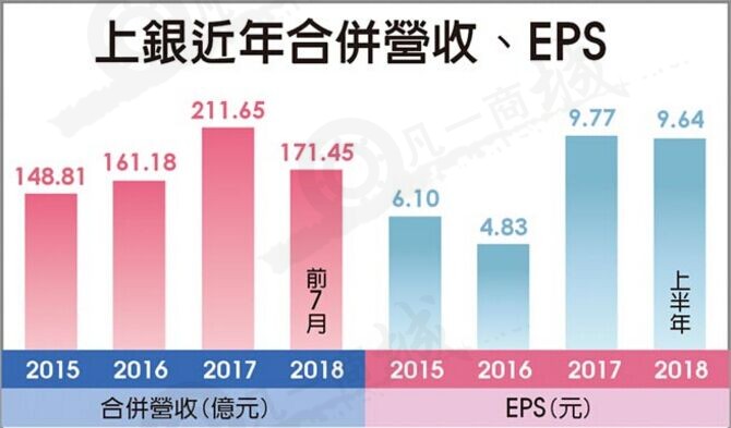 上銀上半年EPS攀升至9.64元,創同期新高。法人估,上銀今年合并營收上看300~310億元,全年EPS具上看20元實力,均飆史上新高。